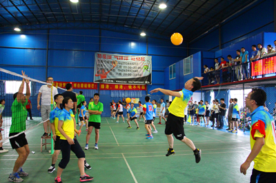 隨著主裁的一聲哨響,氣排球比賽正式開(kāi)始。本次氣排球比賽以淘汰賽形式進(jìn)行,第一輪由“集團(tuán)領(lǐng)導(dǎo)” 對(duì)陣“嘉通無(wú)敵隊(duì)”、“盛景榮隊(duì)”對(duì)陣“開(kāi)心聯(lián)隊(duì)”、“克懼隊(duì)”對(duì)陣“萬(wàn)方物業(yè)隊(duì)”、“勇港隊(duì)”對(duì)陣 “盛青隊(duì)”,兩方的隊(duì)員便開(kāi)始了龍爭(zhēng)虎斗、各施絕技。各隊(duì)的參賽隊(duì)員都以昂揚(yáng)的斗志迎接比賽,發(fā)球、起跳、攔網(wǎng)、扣球……各隊(duì)比分在裁判員的一次次翻牌中發(fā)生變化。最后,“勇港隊(duì)”、“嘉通無(wú)敵隊(duì)”、“盛景榮隊(duì)”、“萬(wàn)方物業(yè)隊(duì)”成為4強(qiáng)隊(duì)伍,進(jìn)入半決賽。