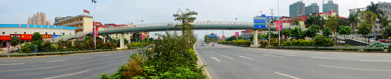 該橋位于白沙友誼立交南側,橫跨在白沙大道,人行天橋工程主體:長75.5米,寬5米,面積377.5平方;步梯:總長111.2米,寬3米,面積333.6平方;主體及梯道均為鋼箱梁結構,工程總造價為535萬,項目施工單位為廣西房都建設工程有限公司,監(jiān)理單位為廣西建科工程監(jiān)理有限責任公司,2015年10月底進場施工,于2015年12月底已經(jīng)全部完工并初步驗收工作。