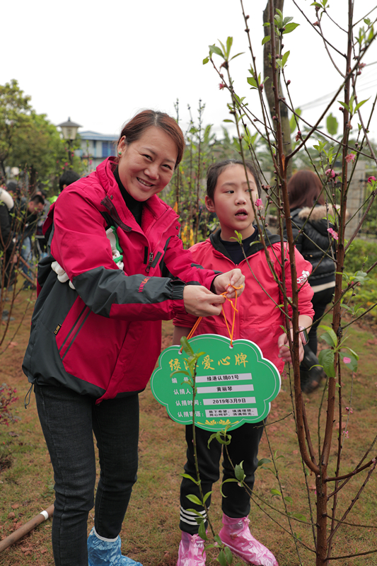 當天,綠港集團還舉行了植樹護綠活動。在細雨紛飛中,家長和孩子們一起動手,分工協(xié)作。大家栽得認真,干得賣力,揮鍬鏟土、挖坑、栽樹、蓋土、澆水,各個環(huán)節(jié)銜接有序,配合默契。整個植樹活動現(xiàn)場熱火朝天,歡聲笑語不絕于耳。經(jīng)過一個多小時的揮汗奮戰(zhàn),上百棵小樹苗整齊的“站”在了綠港·國際中心桃樹林中。放眼望去,樹苗迎風挺立、搖曳生姿,大家看著這一片自己親手種下的樹苗,無不露出幸福的笑容,紛紛與小樹苗合影。綠港集團下屬榮鑫公司副總經(jīng)理唐欽月表示:“植樹造林是一項利于當代、造福子孫的偉大工程。綠港集團成立五年來,每年都積極組織員工開展義務植樹造林活動。今天我們帶上孩子一起參加義務植樹活動,不僅增強了職工們生態(tài)環(huán)境保護的責任感,也給孩子們樹立了關(guān)心、愛護以及主動參與家園建設的意識和榜樣。”